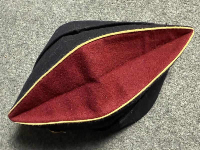 Standard pattern FS side cap in regimental colours, bi-metal cap badge to the side. No maker label but retains its paper size label, ‘6 5/8’. Very good clean condition, appears to be hardly used.