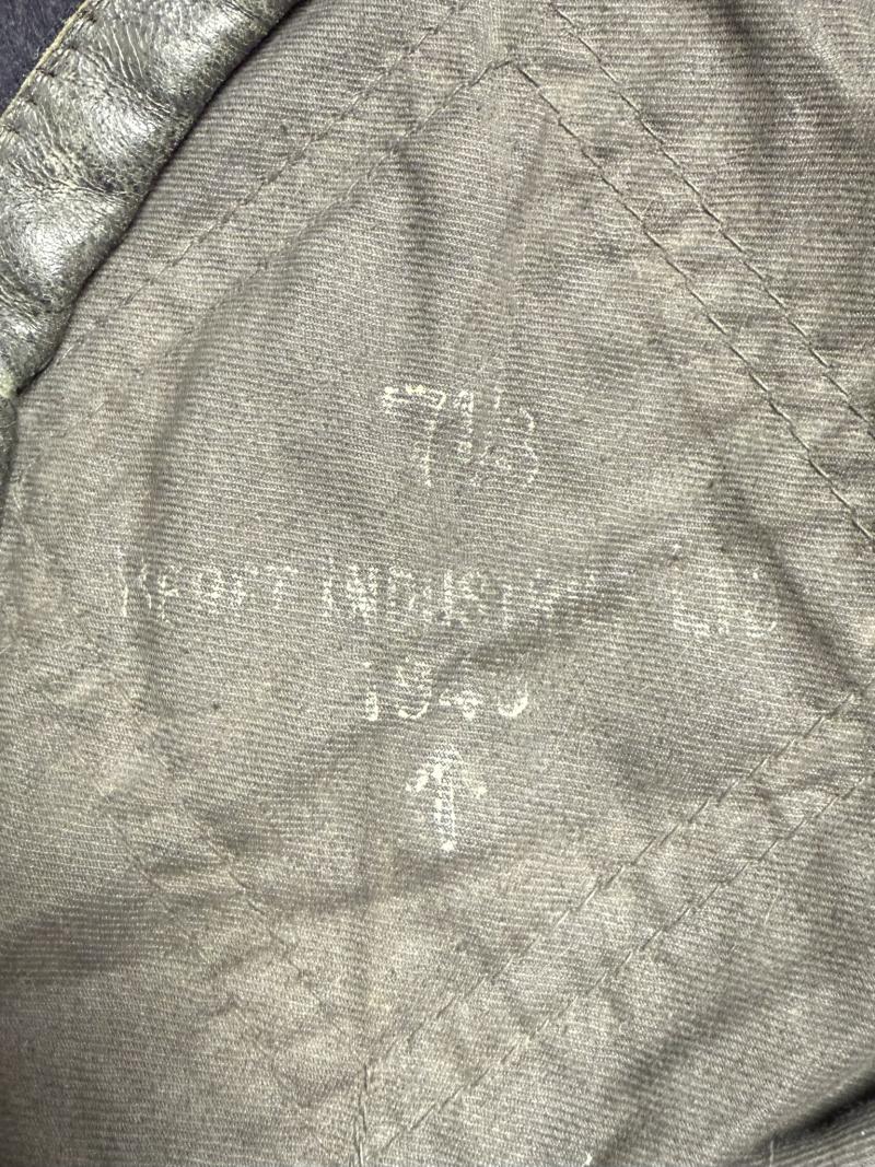 Good clean example of the dark blue beret as issued to Royal Marines and Royal Navy. Feint maker stamps for Beret Industries Ltd, size 7 1/8 and dated 1945. Red felt backing to cap badge, rear stiffener removed but otherwise in very good used condition