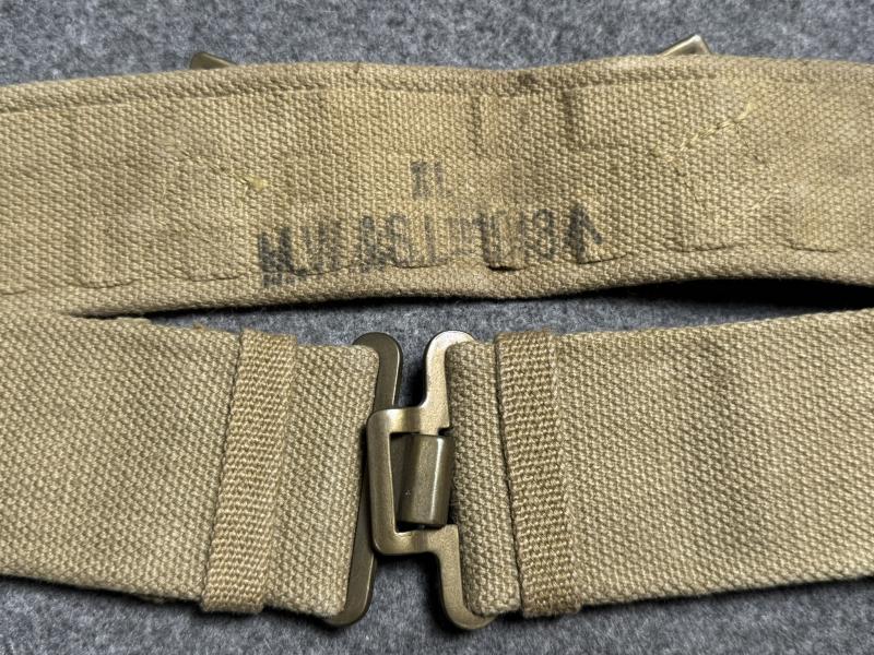 Economy pattern belt in mint condition and in the hard to find XL size. Clear maker marks M.W.&S.Ltd and dated 1943. Measures approx 48”, appears unused.