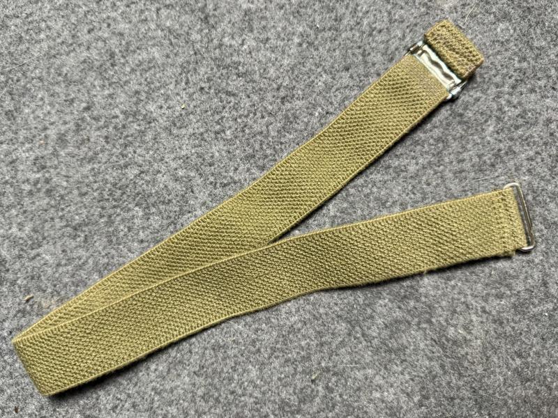 Khaki elasticated chin straps as used on the MkII, MkIII, and RAC pattern helmets. New old stock, appear unused but with some slight marks from storage. Price is for one strap